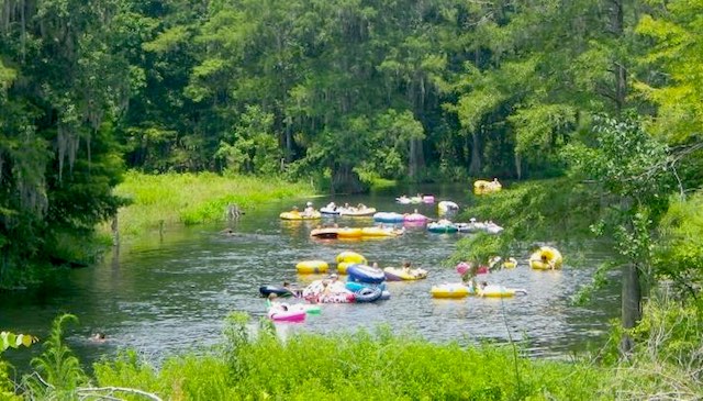 In Fort White, Florida, just 20 minutes northwest of High Springs and 30 minutes from Lake City, lies Ichetucknee Springs State Park. The park contains the headspring and upper 2.5-mile section of the Ichetucknee River, which has been a National Natural Landmark since 1972. And for good reason – the crystalline spring-fed river is one of the most pristine in Florida, with no motor boats, minimal visitor trash, and strictly enforced capacity limits.