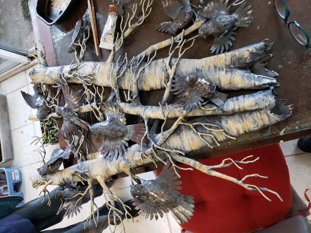 When I visited, I was captivated by beautiful metal wall hangings. I was invited to meet the artist, Ann Opgenorth, who cuts the metal, welds the shapes using Oxy-Acetylene welding, and then paints the finished products. She is also a talented sculptress, artist, stained glass craftswoman, and quilter! I shadowed her for a day while watching this amazing woman work. And, she is a fascinating conversationalist, too!
